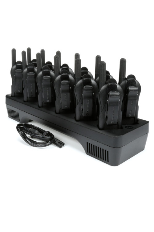 Each Multi-Unit Charger charges either 6 or 12 portable two way radios at a time. They are available for the following models: